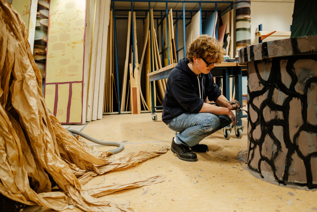 Je krijgt les in ontwerpen, tekenen, decorbouw, setdressing, digitale programma’s als sketch-up en keuzevakken als grimeren en kostuum. Ook werk je aan je ondernemersvaardigheden, leer je je werk in een digitaal portfolio en live aan een opdrachtgever te presenteren.